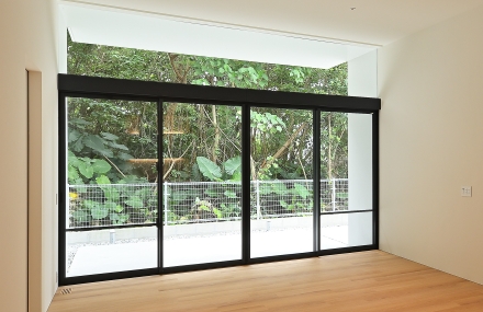 広々としたリビング・ダイニングに設けられた大開口の窓には、外の緑を切り取った借景が、壁一面を彩る絵画のようで迫力満点です!