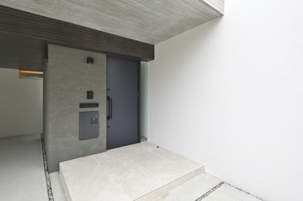 通りから奥へと長いアプローチを設けた形状が、自然と調和するプライベート空間を叶えた作りとなっています。